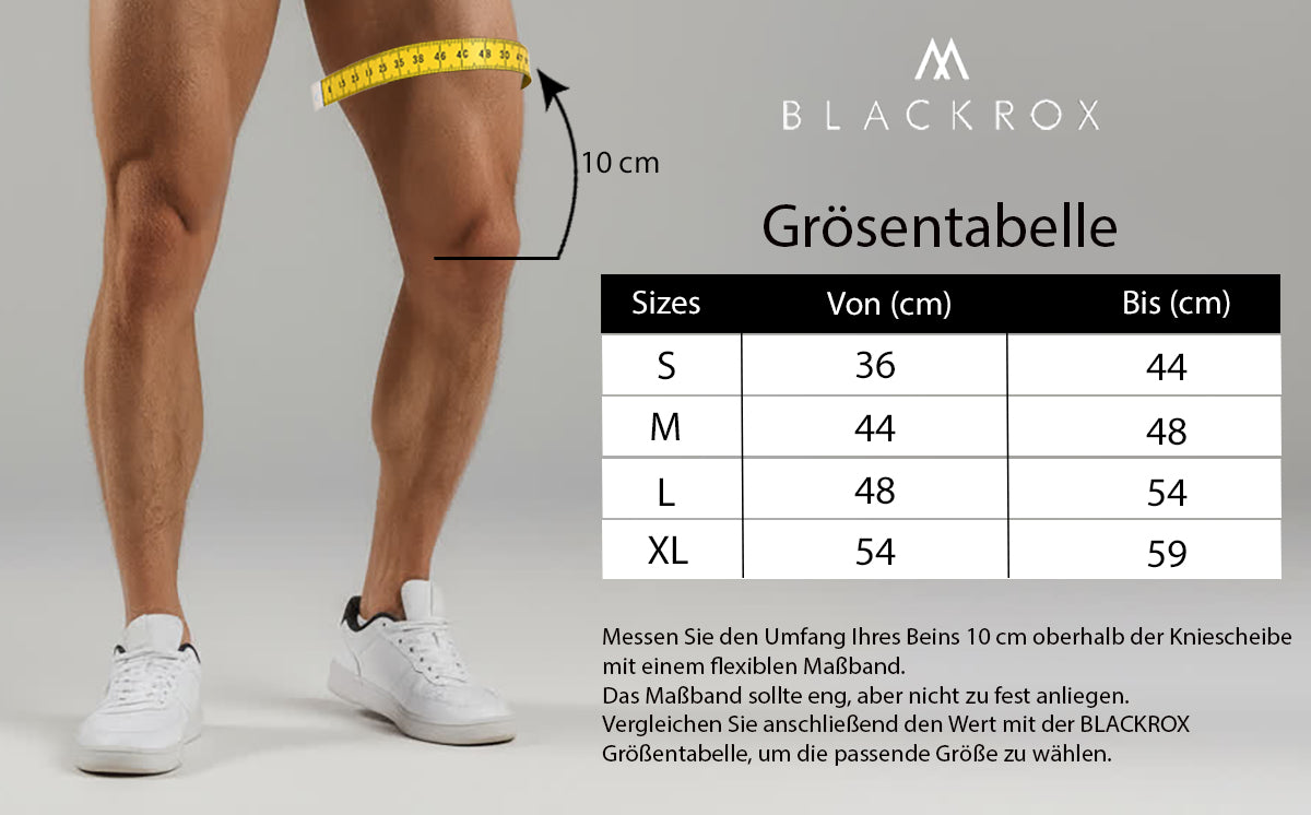 BLACKROX Kniebandage Sport Vergleichssieger Kompressions Knie Bandage, Sportkniebandage, Sport Fußball, Joggen atmungsaktiv, elastisch, Knieschoner, Kniestütze Volleyball Damen & Herren Die Blackrox Kniebandage sorgt für eine optimale Unterstützung und Stabilisierung des Knies. Ob beim Sport, bei Schmerzen oder um das Knie vorbeugend zu schützen, die Bandage lässt sich vielseitig anwenden. Hohe Funktionalität der Blackrox Kniebandage Das Material ist elastisch und dehnbar, so dass sich der Kniestabilisator einfach an- und ausziehen lässt.