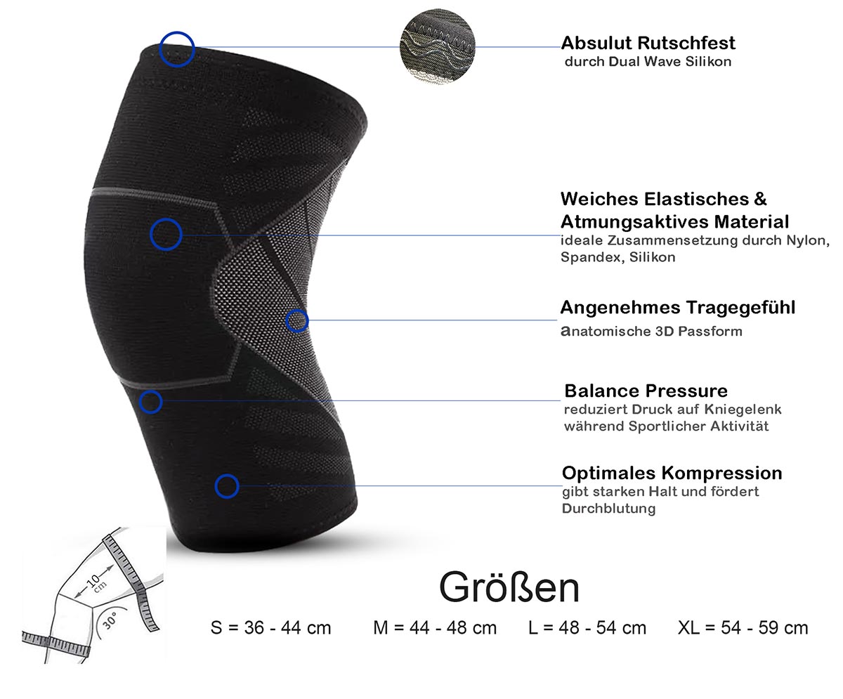 BLACKROX Kniebandage V3, 1 Stück, Knieschoner, rutschfest, Kompression, Stabilität, Damen und Herren, Volleyball, Laufen, Wandern, Kraftsport, atmungsaktiv Die BLACKROX Knie Bandage V3 bringt alles mit, um das Knie zu stabilisieren und zu schützen. Das Material ist weich und nachgiebig und überzeugt dennoch durch eine optimale Passform. Sie eignet sich nicht nur für unterschiedliche Sportarten, sondern kann auch ohne Weiteres im Alltag getragen werden.