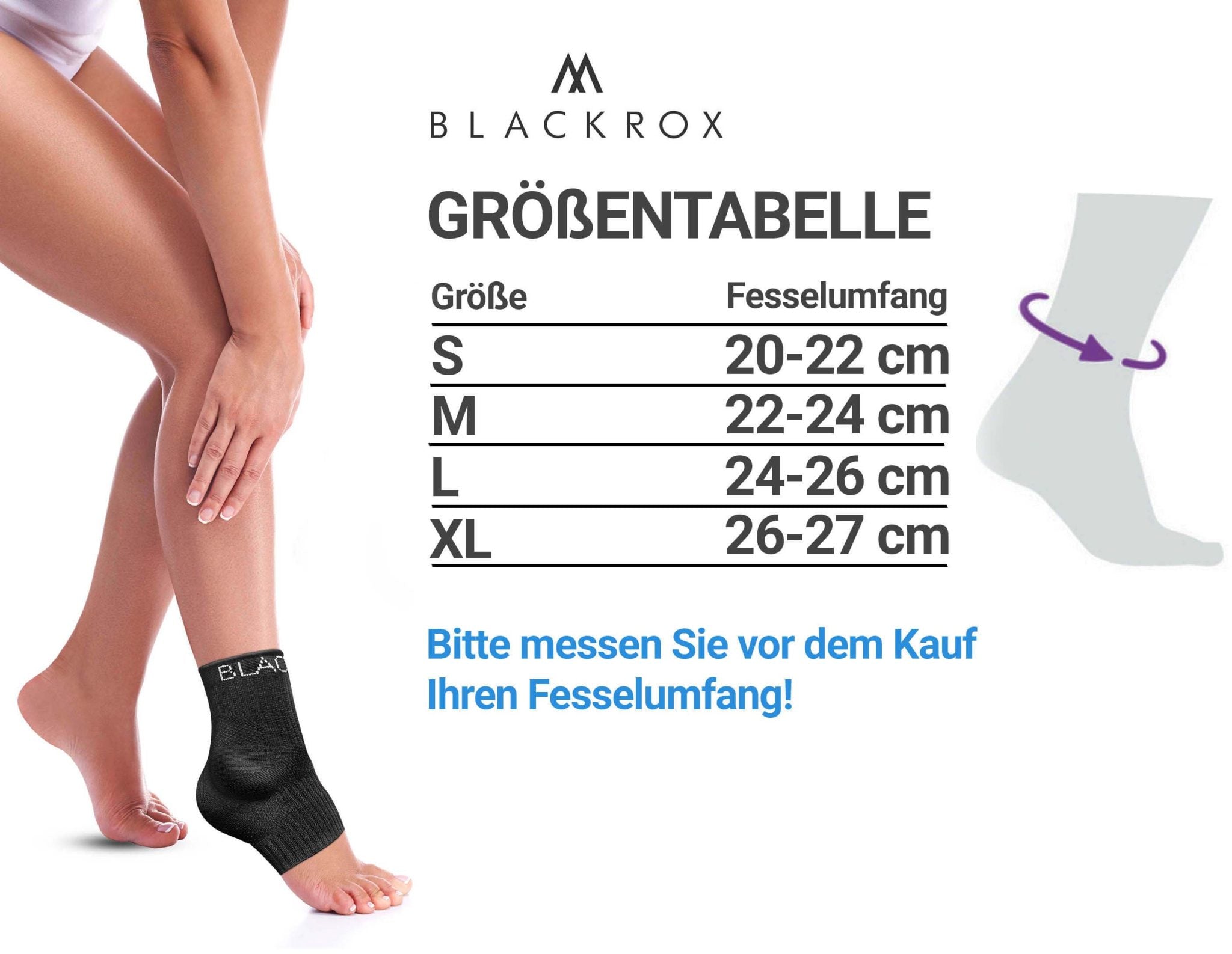 BLACKROX Sprunggelenkbandage ANANKLE mit Silikon Pads , 1 Stück, Gelenkbandage, für rechts und links, stabilisiert das Sprunggelenk, Unisex, integrierte Silikon stütze Die BLACKROX Fußgelenk-Bandage ANANKLE mit Silikon sorgt für eine optimale Stabilisierung vom Sprunggelenk, ganz gleich ob bei sportlichen Aktivitäten oder im Alltagsgeschehen. Das liegt nicht zuletzt an der gleichmäßigen Kompression, die durch das Tragen ausgelöst wird. Die Knöchelstütze lässt sich individuell tragen, fördert die Durchblutung, hinterlässt einen wärmenden Effekt und stabilisiert perfekt das Sprunggelenk.